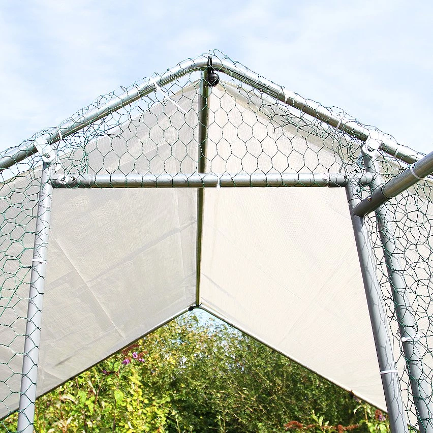 Une house impermĂ©able est fournie gratuitement pour protĂ©ger vos animaux de la pluie ainsi que les UV. Cet enclos poulailler leur donnera une amplitude dâespace Ă vos animaux et assez dâespace pour mettre un poulailler fournissant un endroit sĂ©cure.
