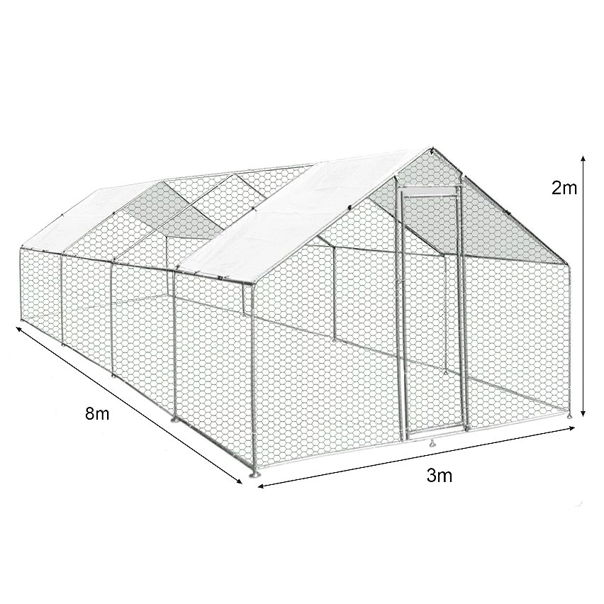 Deux bâches imperméables sont fournies gratuitement pour protéger vos animaux de la pluie ainsi que les UV. Cet enclos poulailler leur donnera une amplitude d’espace à vos animaux et assez d’espace pour mettre un poulailler fournissant un endroit sécure.