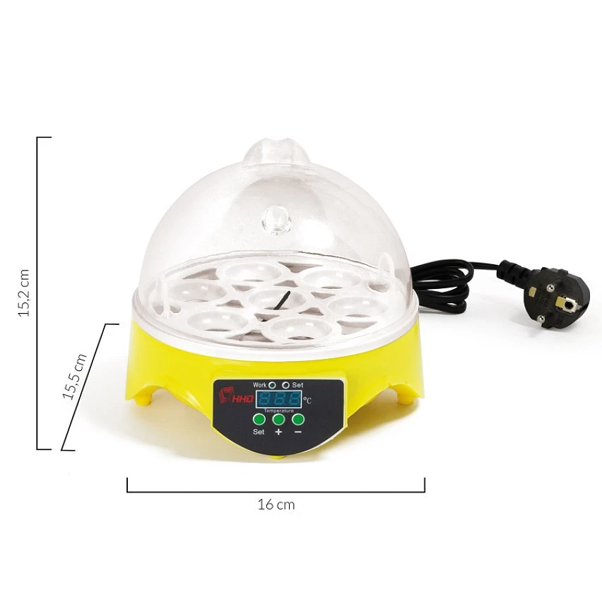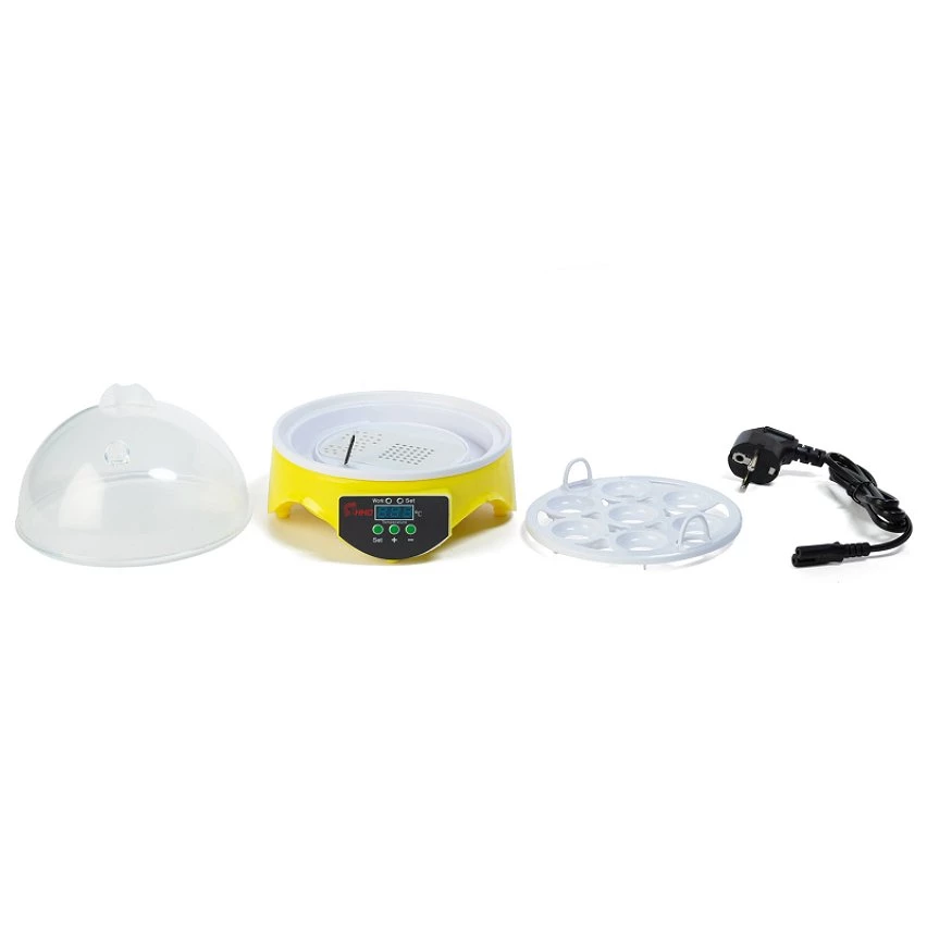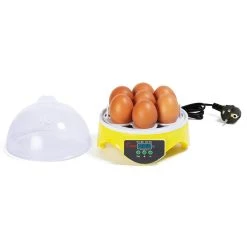 Certaines espèces de poules sont plus maternelles que d’autres et il arrive parfois que quelques races délaissent leurs œufs une fois pondus. Il est donc recommandé dans ce cas d’utiliser des incubateurs, aussi appelés couveuses, pour permettre aux œufs d’éclore. Avec cette couveuse manuelle capable d’accueillir jusqu’à 7 œufs, vous pouvez très rapidement agrandir votre élevage en toute simplicité. Idéal pour un petit élevage familial, l’incubateur vous permet d’obtenir un meilleur taux d’éclosion. La couveuse manuelle est fabriquée avec une base plastique de couleur jaune ainsi qu’un couvercle transparent vous permettant d’apercevoir en continu la transformation des œufs. Grâce à ses 7 emplacements, l’incubateur propose une capacité d’accueil allant jusqu’à 7 œufs de poules. Chaque socle pour œufs mesure 3,3 cm.Parfaite pour les débutants, la couveuse dispose d’un écran de 2,5 x 1 cm afin de contrôler la température et de la régler de 20 à 50° à l’aide des boutons “+” et “-“. Grâce à sa forme dôme et son système de ventilation, l’air pourra circuler de façon homogène et les conditions de couvaison seront idéales. Comme son nom l’indique, la couveuse vous impose de retourner les œufs à la main 2 à 3 fois par jour dès le deuxième jour d’incubation afin que l’embryon ne se colle pas à la membrane de l’œuf. Nous vous conseillons de procéder à cette manipulation jusqu’au dix-huitième jour environ d’incubation. Astuce ID Market : faites un trait ou tout autre symbole sur vos œufs afin de voir si ces derniers ont été retournés. Grâce à ce système de couvaison artificielle, vos petits poussins naîtront après les 21 jours d’incubation. Laissez-les encore une journée dans leur couveuse afin de laisser sécher leur plumage et qu’ils prennent quelques forces avant de rejoindre vos autres poules. Dimensions de l’incubateur manuel 7 œufs- Dimensions totales : Longueur 16 cm x largeur 15,5 cm x Hauteur 15,2 cm- Dimensions de l’écran : 2,5 cm x 1 cm- Dimension du socle d’un œuf : 3,3 cm- Dimension du trou d’aération : 0,7 cm- Température réglable de 20 à 50°- Capacité : 7 œufs de poules- Puissance 20W – Tension 220V- Certifications CE