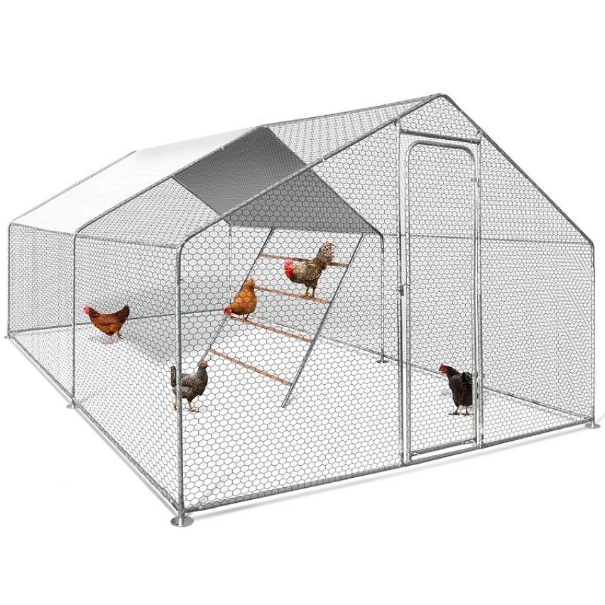 Pour élever vos poules dans les meilleures conditions, offrez-leur une totale liberté de mouvement grâce à cet enclos maxi surface de 12 m² et son perchoir en bois 4 niveaux !Pensé par des éleveurs professionnels, cet enclos grillagé en acier galvanisé offre un espace bien fermé pour protéger votre basse-cour des prédateurs. Ses grandes dimensions L. 4 x l. 3M et son grillage en maille d’environ 25 x 25 MM en font un enclos idéal pour permettre à vos animaux une grande liberté de mouvement ! Pratique avec sa large porte à fermeture sécurisée par loquet, cet enclos est l’habitat extérieur conçu pour un élevage de 10 à 14 poules.Muni d’une bâche de toit waterproof et anti-UV 150 gr/m² en polyester, cette volière offre une partie ombragée et une protection contre la pluie. Le grand perchoir en bois 4 niveaux de 140 CM de hauteur apporte quant à lui un confort optimal à votre basse-cour et permet à vos poules de se percher facilement et ainsi de s’y sentir protégé et en sécurité ! Une fois le sentiment de tranquillité trouvé, vos poules pourront se reposer au sein de leur enclos dans la journée. Chaque perchoir est espacé de 30 CM pour qu’aucune de vos poules ne soit gênée par un autre congénère. Fabriqué en bois, les 4 barreaux évitent à vos poules d’avoir froid aux pattes et la forme arrondie permet à vos animaux de s’y accrocher aisément. Conseil ID Market : ne fixez pas votre perchoir directement sur le grillage mais sur la structure de votre enclos. Et n’hésitez pas à compléter cet enclos avec nos différents modèles de poulaillers en bois pour favoriser la ponte de vos poules et récolter de bons œufs frais tous les jours. Pensez à rentrer vos poules dans votre poulailler le soir venu pour être certain qu’elles aient suffisamment chaud et qu’elles soient à l’abri de tout danger. Astuce : pensez à ancrer votre enclos avec des sardines pour qu’aucun intrus ne puisse creuser et passer par dessous sous votre grillage.Vos poules vont adorer gambader en toute sécurité dans ce parc grillagé 12m² avec son grand perchoir qui favorisera leur bien-être ! Dimensions de l’enclos pour poules 12 m² avec grand perchoir- Dimensions hors tout de l’enclos : Longueur 400 CM x largeur 300 CM x Hauteur 200 CM- Diamètre des tubes de la structure : 25 MM- Taille des mailles : environ 25 x 25 MM – Grillage triple torsion- Piquet d’ancrage non fourni- Grillage vert ou gris selon arrivage- Toit en filet- Dimensions hors tout du perchoir : Longueur 105 CM x Hauteur 140 CM- Dimensions des barreaux en bois : D. 27 MM x L. 100 CM- Espacement de 30 CM entre les perchoirs en bois- Diamètre des tubes en acier galvanisé : 32 x épaisseur 0,8 MM- Fixation sur la structure des enclos de 25 MM de diamètre- Poulailler en bois vendu séparément- À monter soi-mêmePour plus de facilité de montage, nous vous conseillons d’être 2 personnes.Découvrez également toute notre gamme d’enclos poulaillers et nos accessoires pour poules sur notre boutique en ligne !