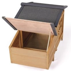 Le poulailler sur pilotis en bois brut de qualitĂ© supĂ©rieure vous permet de protĂ©ger vos poules de tous les prĂ©dateurs. Vous pouvez dĂ©sormais avoir de bons Ćufs frais Ă portĂ©e de main tous les jours grĂące Ă cet abri chaleureux surĂ©levĂ© oĂč vos poules se sentiront en parfaite sĂ©curitĂ© ! Cet habitat en bois dispose d’un toit en goudron gris et de 4 pieds qui rehaussent la maisonnette, de quoi Ă©viter tout risque d’humiditĂ© liĂ© au sol ! Ălevez vos poules Ă l’abri du danger en les rentrant tous les soirs et en fermant les portes Ă l’aide du systĂšme Ă loquet ! ComposĂ© d’une Ă©chelle et d’une porte latĂ©rale donnant dans l’entrĂ©e de la maisonnette, le poulailler sur pilotis offre Ă©galement une facilitĂ© d’accĂšs au pondoir grĂące Ă son toit relevable. DotĂ© d’un double espace de ponte, vos poules pourront aller et venir selon leurs envies. L’abri est Ă©quipĂ© d’un tiroir Ă dĂ©jection en contreplaquĂ© (mĂ©lamine), ce qui facilite beaucoup son nettoyage ! C’est l’occasion pour vos poules de trouver un abri chaleureux et surĂ©levĂ© facilement accessible pour leur gabarit. Prenez soin de vos poules en les mettant Ă l’abri dans un habitat confortable et surĂ©levĂ© ! Dimensions du poulailler sur pilotis- Dimensions totales hors tout : Longueur 107 CM x largeur 63 CM x Hauteur 70,5 CM (toit compris)- CapacitĂ© d’accueil : 4 poules- Dimensions des pieds : L. 3 x l. 2 x H. 6 CM- Dimensions de la porte de devant : L. 24 x H. 33,5 CM- Dimensions de la porte latĂ©rale : L. 24 x H. 33,5 CM- Dimensions de la maisonnette : L. 70 x l. 63 x H. 64,5 CM- Dimensions du pondoir : L. 37 x l. 61,3 x H. 30,5 Ă 38 CMDĂ©couvrez Ă©galement tous nos modĂšles de poulaillers disponibles sur notre boutique en ligne !