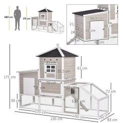 Grâce à sa structure en bois de sapin pré-huilé et peinte en blanc et gris, à son toit bitumé hydrofuge, à sa conception surélevée, ce poulailler PawHut résiste parfaitement aux intempéries. La clôture en métal protègera vos poules contre les prédateurs tout en facilitant la circulation de l’air. Pratique, ce poulailler est doté de nombreux équipements pour le bien-être de vos gallinacés (perchoirs, nichoir, pondoirs, rampes, etc…) et afin de vous faciliter son entretien (tiroir déjection).
