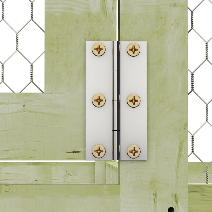Fabriqué en pinède imprégnée, le poulailler est extrêmement durable, résistant aux intempéries et à la pourriture. Équipé d’une serrure, le portail comporte une porte verrouillable facile à ouvrir avec des verrous inclus. De plus, grâce à la grille en fil d’acier galvanisé, il vous permet de garder un œil sur vos animaux. Le poulailler doit être assemblé.