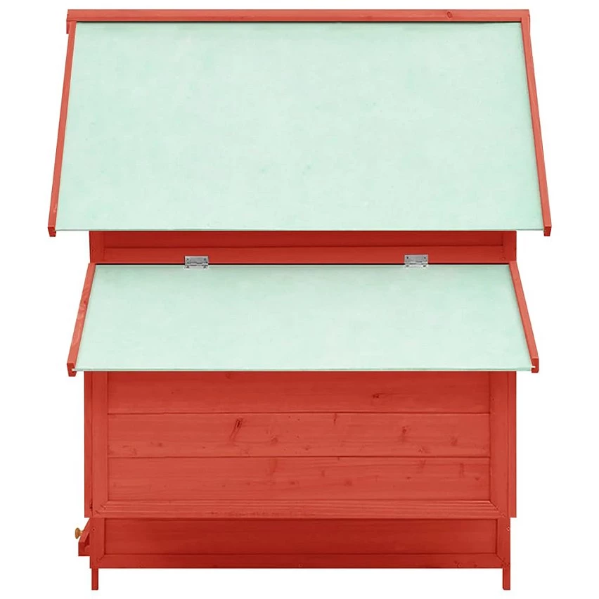 Le poulailler a été conçu avec une fenêtre à l’avant pour permettre à l’air frais de circuler. Elle comporte deux nichoirs, tous deux avec un toit qui peut être ouvert pour ramasser des œufs. Le bac inférieur peut être retiré pour un nettoyage facile. La porte est verrouillable depuis l’extérieur avec un loquet.