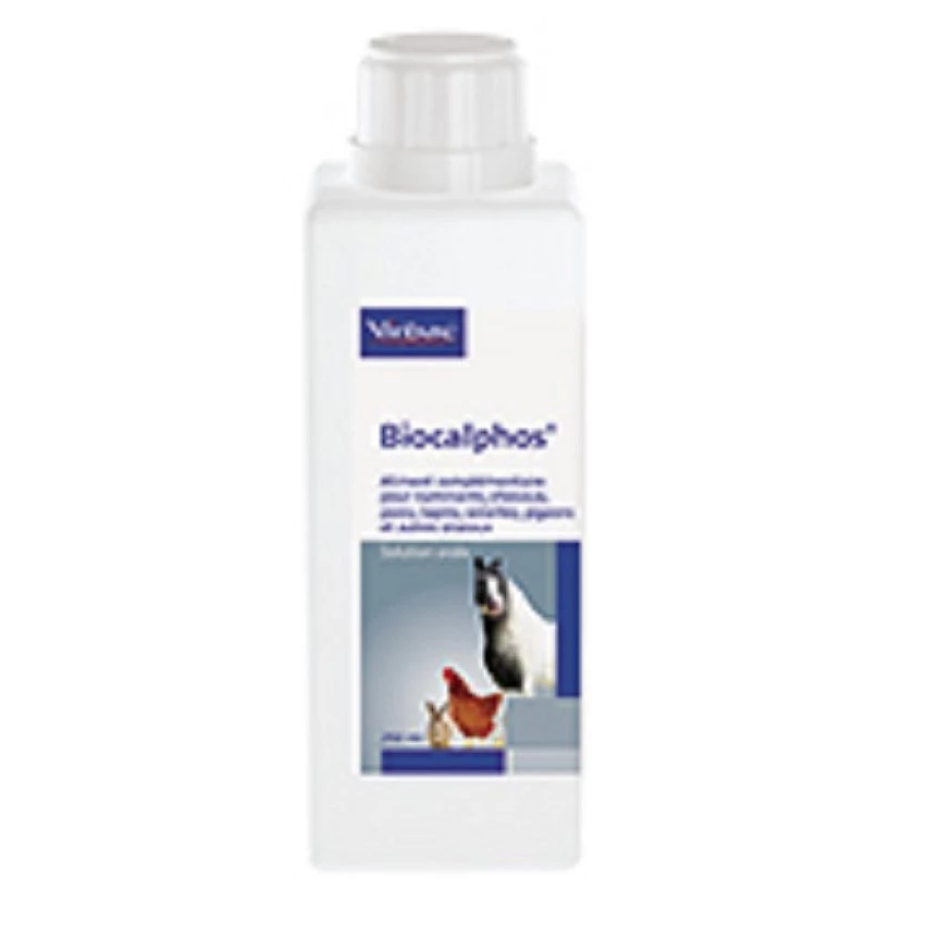 Virbac Biocalphos est un aliment complémentaire pour ruminants, chevaux, porcs, lapins, volailles, pigeons et autres oiseaux